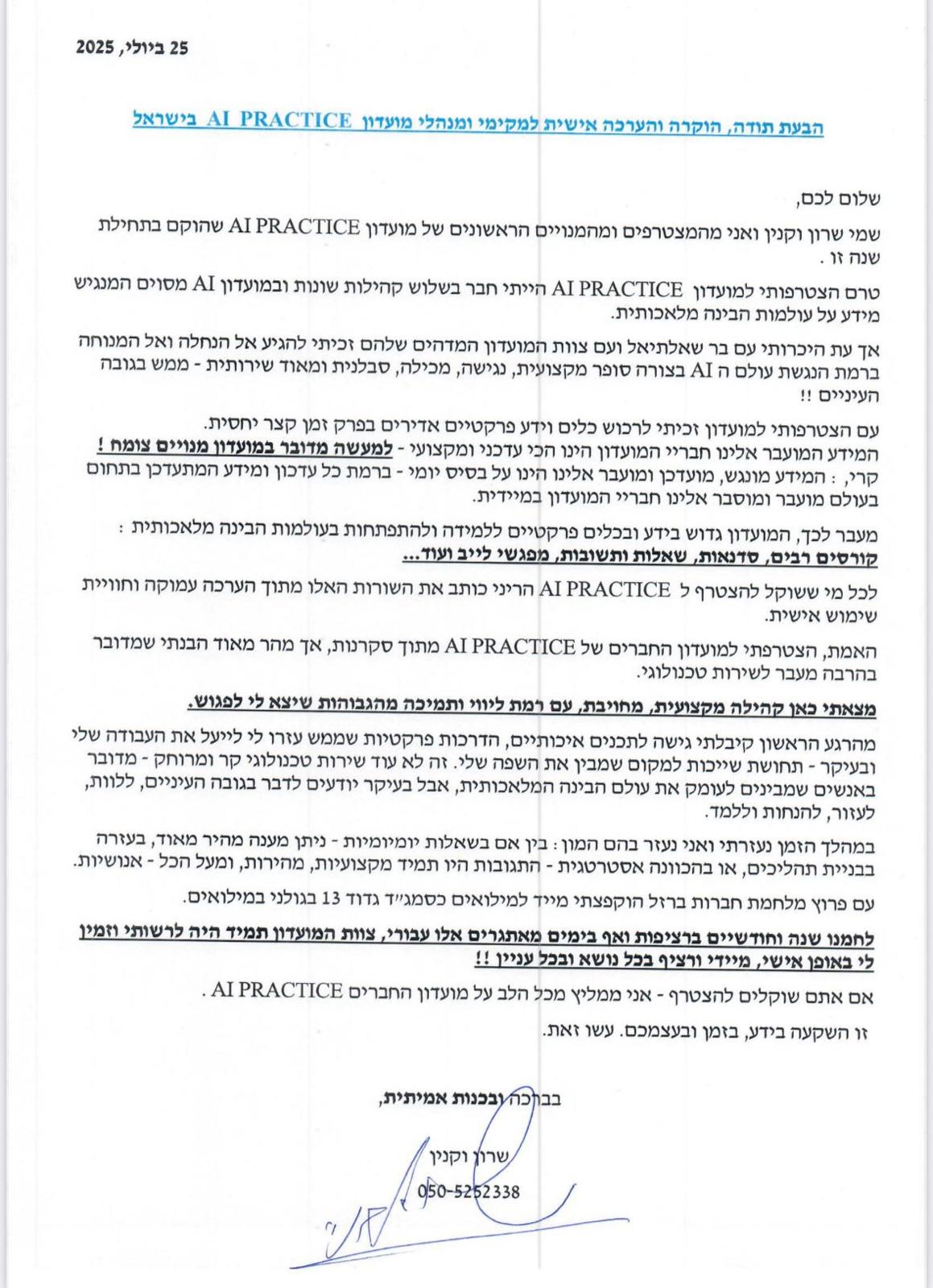 במועדון פרקטי AI אתה מקבל את כל מה שאתה