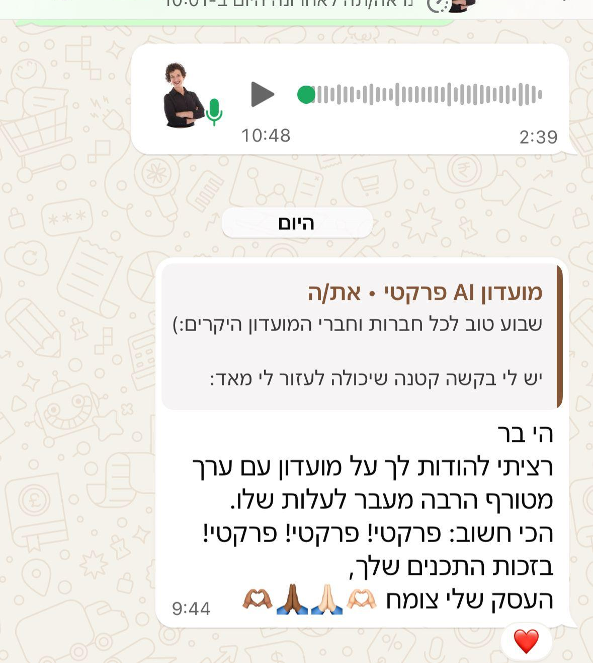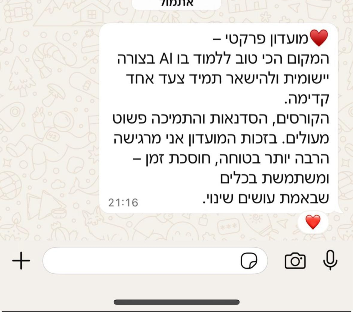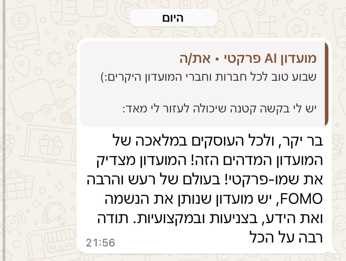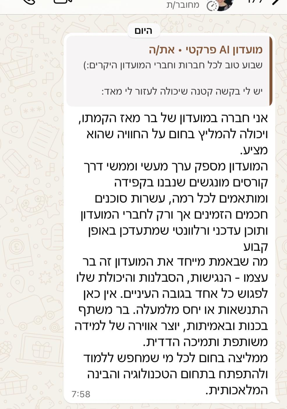 ועם מועדון פרקטי AI אצלך בנייד גם אתה סוף סוף תוכל:
